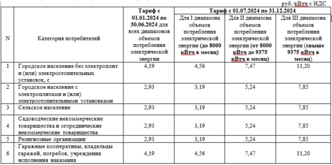 С 1 июля 2024 года произойдет изменение тарифов на электрическую энергию для населения