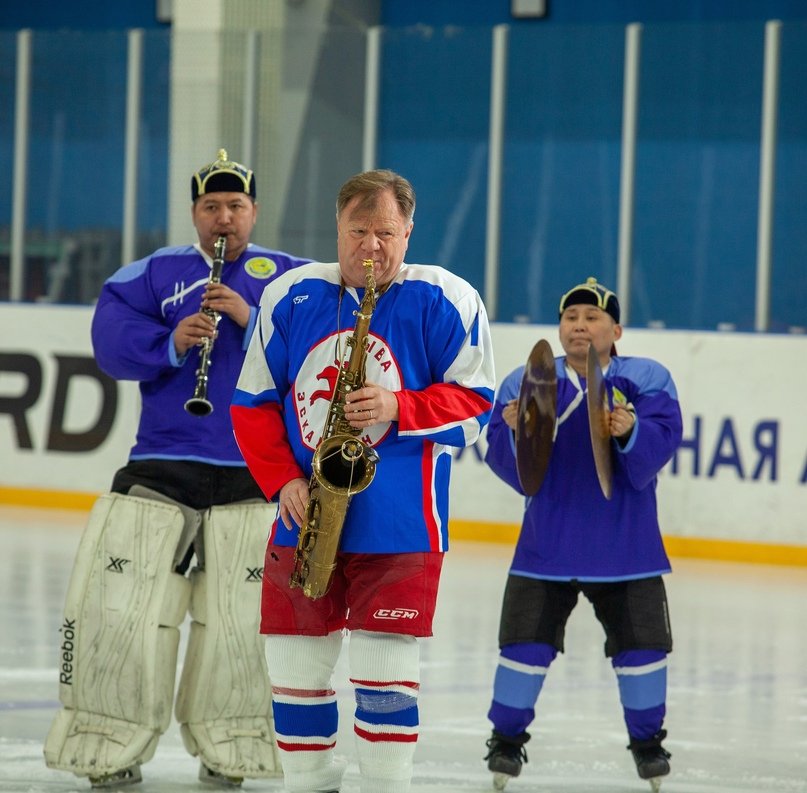 На льду в исполнении народной артистки Тувы Софьи Кара-оол прозвучали песни: "Эй, моряк", "Трус не играет в хоккей", "Тооруктуг долгай Тандым". Импровизировал на саксофоне Игорь Бутман, это было завораживающе, и каждый номер сопровождался овациями.