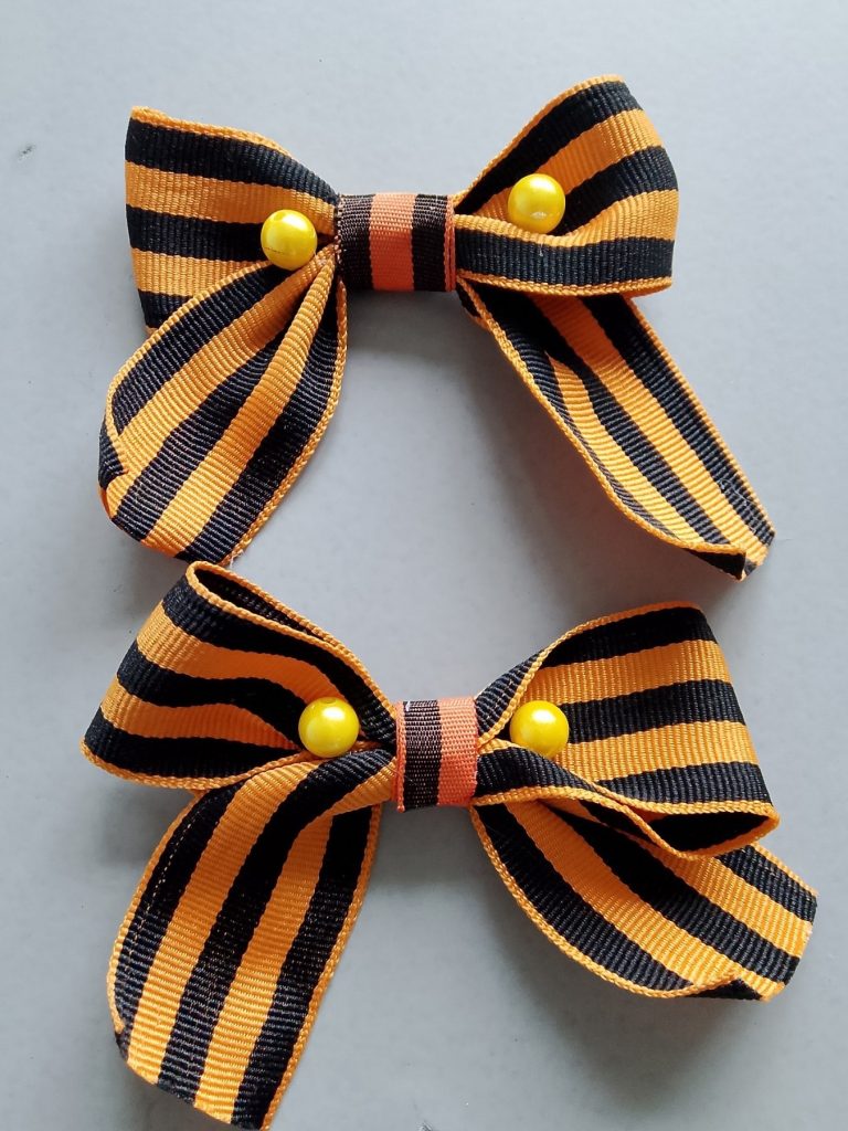 Они сделали своими руками оригинальные броши из георгиевской ленты и украсили российским триколором.