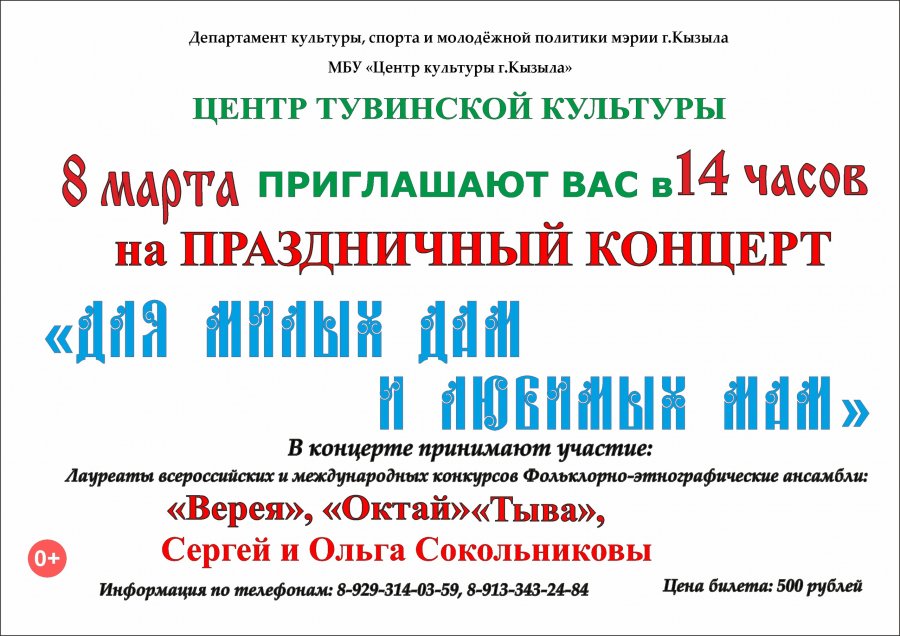 Сегодня, 8 марта, культурные площадки столицы Тувы предлагают разнообразную концертную программу, посвященную Международному женскому дню.