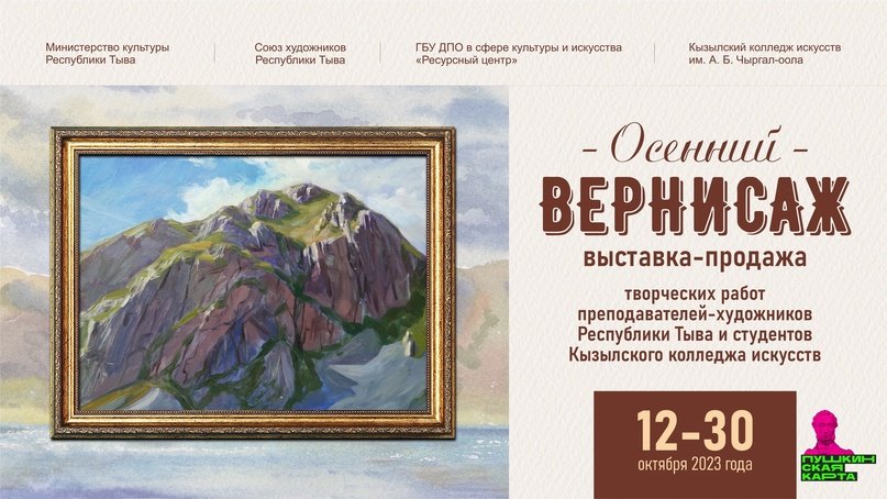 Выставка «Осенний вернисаж» открыта для посетителей с 12 до 30 октября. Адрес: г. Кызыл, ул. Комсомольская, 23, 2 этаж, выставочный зал Дома художников.