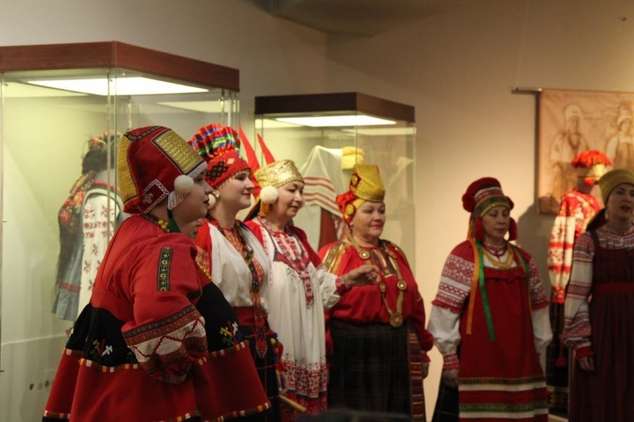 Открытие выставочного проекта «Крестьянский костюм Енисейской губернии конца XIX – начала XX веков» было украшено выступлениями детского фольклорного ансамбля «Октай», ансамбля русской народной песни Центра русской культуры «Раздолье» и фольклорного ансамбля музея-заповедника «Шушенское» «Плетень», которые погрузили гостей выставки в самобытную русскую культуру Енисейской Сибири.