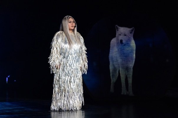 И действительно, магии на сцене хватает. Самая удивляющая часть действия – работа петербургских мастеров Андрея, Александры, Натальи Мельников и Марии Куликовой. Благодаря спецэффектам Белая Волчица ожила! Да, именно так! Как будто она сошла со страниц книги Монгуша Бораховича (замечательные иллюстрации Валерия Елизарова). Я просто вздрогнула, увидев её, сразу нахлынули впечатления от книги Монгуша Кенин-Лопсана. (Думаю, папа бы порадовался увиденному…) Или роскошный снег – символ, говорящий о многом. Как он падает, падает крупными фантастическими хлопьями, сколько глубоких символов в этом кружении снежинок… Или эффект текстов (вспомнишь скрижали из древности), что появляются из воздуха и в воздухе. Ценно то, что такие ходы режиссер придумал не для красивостей, а для воплощения сюжета. Для усиления драматизма.