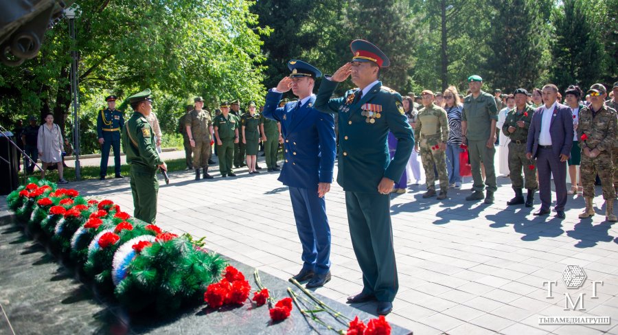 Сегодня по случаю памятной даты на Мемориале Победы у памятника в виде БТР «Сыновьям Тувы: Живым и павшим в локальных войнах и военных конфликтов» состоялось торжественное возложение венков и цветов к мемориалу павшим воинам в Великой Отечественной войне и участникам боевых действий.