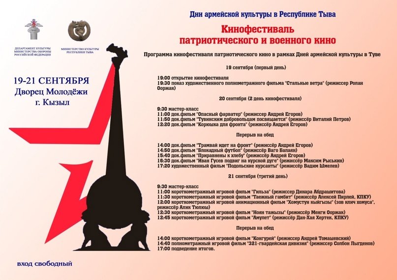 Данное событие, проходящее в рамках Дней армейской культуры в Республике Тыва, предлагает уникальную возможность посетить кинофестиваль, посвященный патриотическому и военному кино.