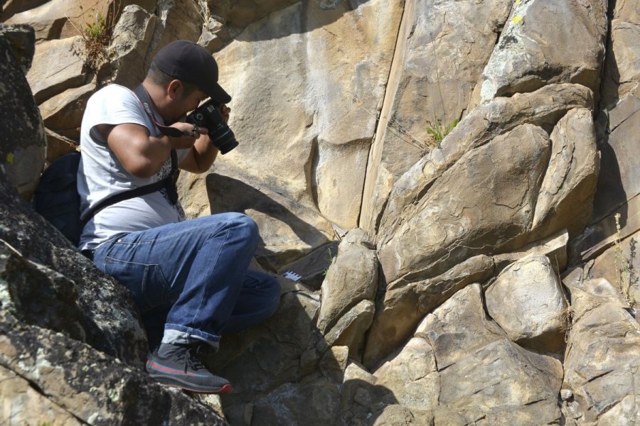 Научный сотрудник ЦАИ Мерген Монгуш изучает и фиксирует на фотоаппарат артефакты, затем уже другой ученый – Кежик Монгуш – заносит данные в компьютер, рисует в специальной программе планы, границы расположения петроглифов. Как полагают исследователи, рисунки могут датироваться скифским период.