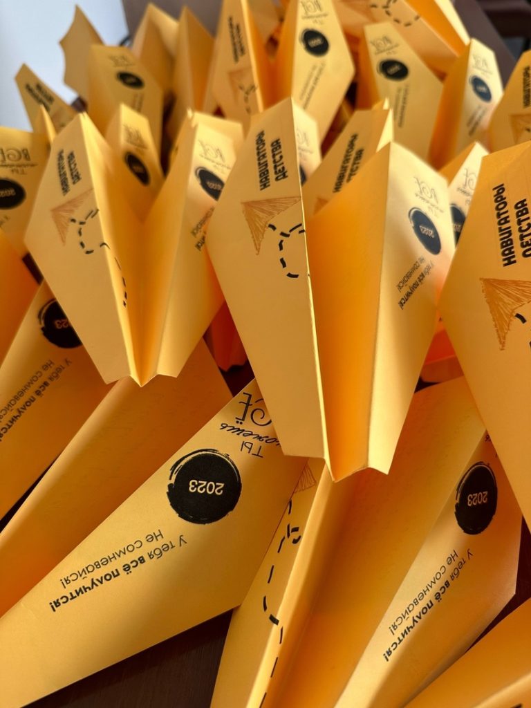 Старшекурсники заранее изготовили из бумаги самолетики и написали напутственные слова для тех, у кого студенческая жизнь начинается впервые, то есть для первых курсов.