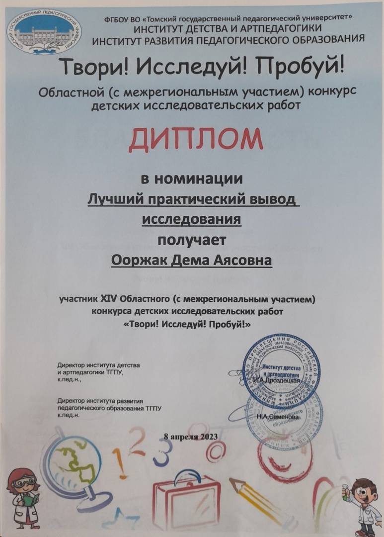 Ооржак Дема -1 класс (тема работы: "Сладкая опасность")