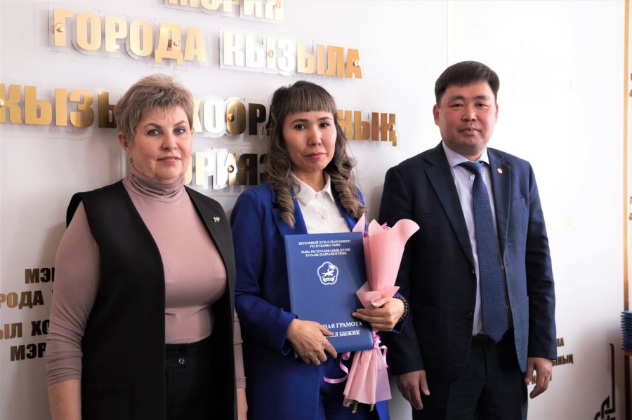 В Кызыле накануне Первомая наградили за профессиональные достижения лучших работников различных отраслей. Почетными грамотами и благодарностями разных уровней власти были отмечены десятки человек: это воспитатели, учителя, техработники, социальные педагоги и др. Для многих награда, приуроченная к 1 мая, стала первой в жизни.