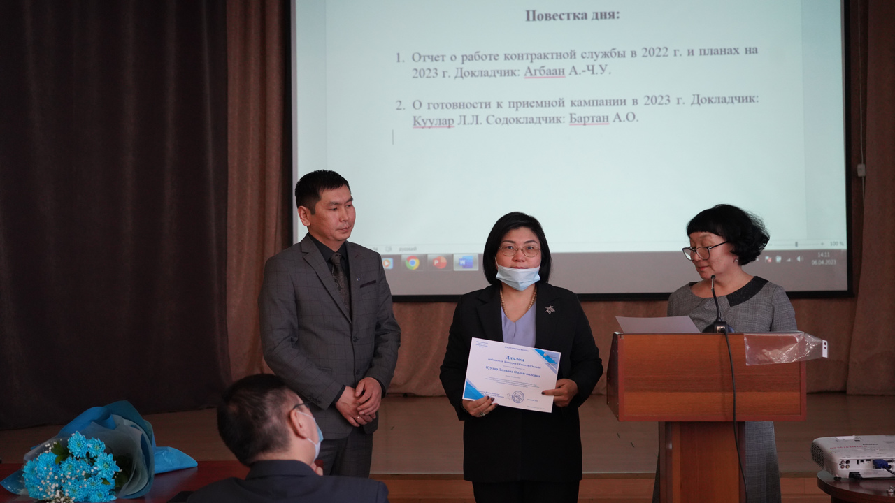 Очередное заседание ректората ТувГУ началось с церемонии награждения. В актовом зале главного корпуса дипломы вручили победителям всероссийского конкурса интеллектуальных онлайн-продуктов,