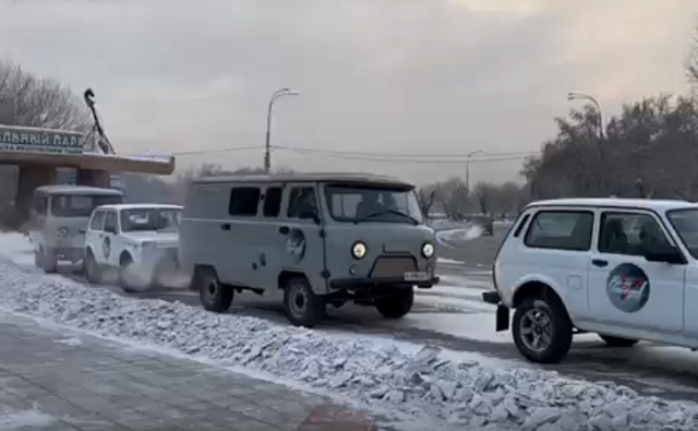 Сегодня из Кызыла в Абакан выдвинулась автоколонна из 9 машин . Автомобили повышенной проходимости – УАЗ "Таблетка","Нива" и Тойота Хайс выстроились в ряд перед Площадью Победы. Техника высокой проходимости необходима на передовой для передвижения военнослужащих в полевых условиях, перевозки раненых, доставки продуктов и медикаментов.