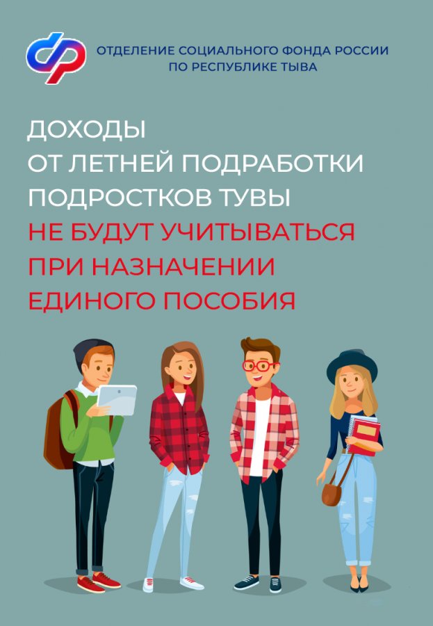 Отделение СФР по Республике Тыва информирует: с 1 июня 2024 года доходы от трудовой деятельности детей до 18 лет не учитываются при назначении семье единого пособия