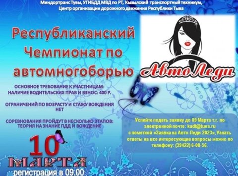 10 марта 2023 года в г. Кызыле состоится традиционный чемпионат женского водительского мастерства «Автоледи», приуроченный к Международному женскому дню.