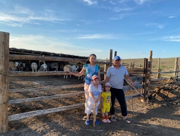 В свободное время они играючи занимаются домашними делами: воду приносят, за телятами бегают, сухой навоз собирают. Так как в летнее время в хозяйстве работы много, нам на сенокосе помогают родственники мужа. Предстоит заготовить много кормов и дров на зиму. Шесть лет назад на сельском сходе нас поддержали односельчане, и нам одобрили участие в проекте «Кыштаг для молодой семьи». В итоге передали 20 коров. Также нам выделили участок для стоянки. Как участникам проекта, выделили делянку леса, откуда вывезли древесину для постройки дома и и сельскохозяйственных построек. Мы прошли краткосрочные курсы по основам зоотехнических, ветеринарных и экономических правил для ведения предпринимательской деятельности. По условиям проекта через два года, в 2019 году, мы вернули 20 голов крупного рогатого скота.