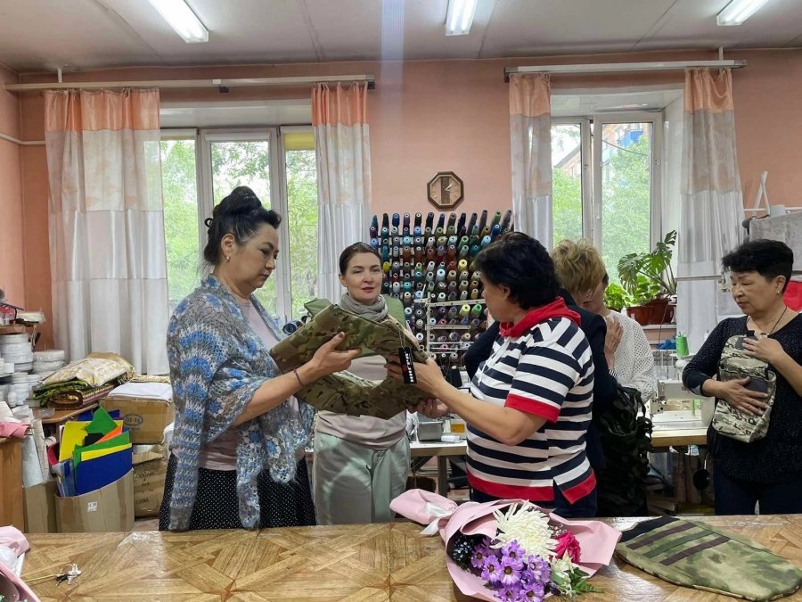 Она отметила, что в республике создано много волонтерских групп, помогающих фронту, участникам СВО, и рассказала о волонтерах-швеях, которых объединила кызылский предприниматель Наталья Затолочная.