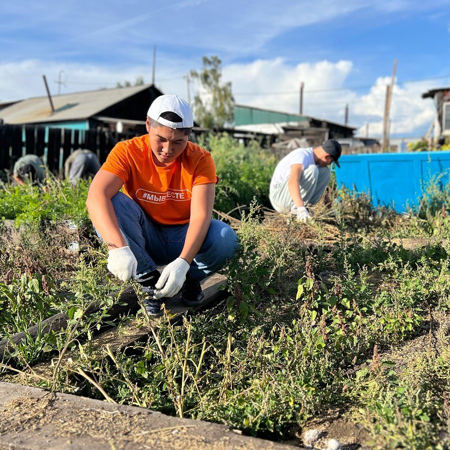 Тувинские тимуровцы помогли супруге участника СВО очистить огород от сорняков