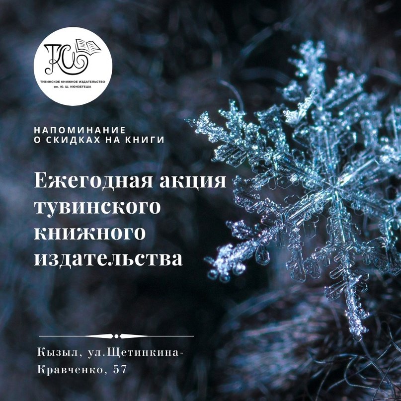 "А к некоторым праздникам устраиваем акции, чтобы наши читатели могли подготовиться к праздникам. И к самому любимому празднику - к Новому году - издательство почти каждый год снижает цены на свой ассортимент. Акция продлится до конца года, чтобы вы успели собрать подарки для близки х. Приглашаем в наш книжный магазин по адресу: Кызыл, ул.Щетинкина-Кравченко, 57", - говорится на сайте издательства.