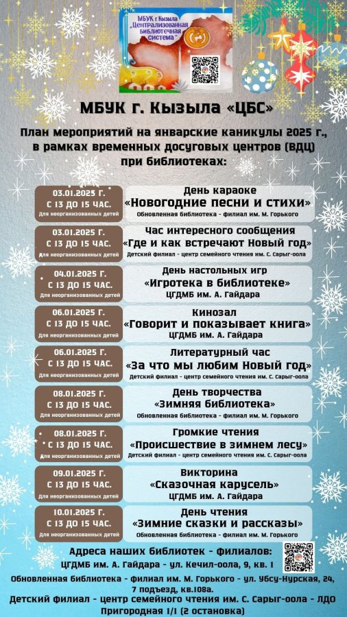 С 3 января на базе библиотечной сети города Кызыла работают временные досуговые центры.