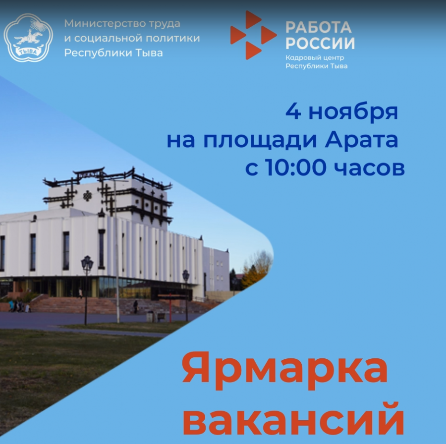 Центр занятости населения Тувы в День народного единства приглашает всех на Ярмарку вакансий.