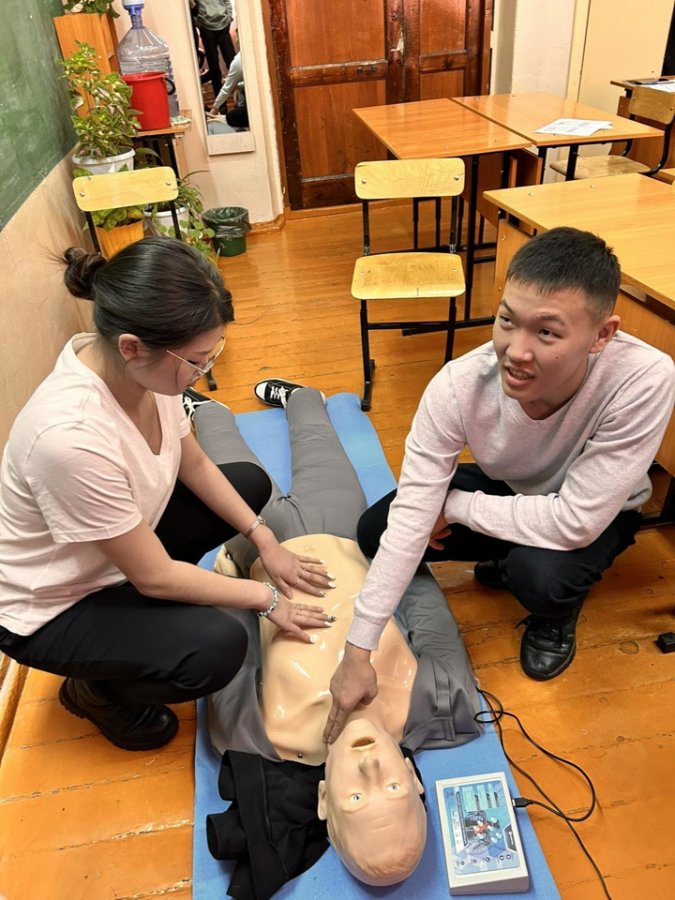 В рамках просветительско-образовательного проекта «Университетские субботы» старший преподаватель кафедры анатомии, физиологии и безопасности жизнедеятельности Шенне Куулар совместно с выпускницей 5 курса ФКБЖ_309, учителем физической культуры гимназии №9 Кызыла Херелмой Хен-оол провели мастер-класс на тему "Первая помощь пострадавшему. Реанимация".