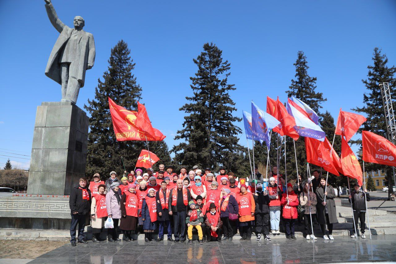 Тувинские коммунисты совместно с представителями ВЖС «Надежда России», ООД «Дети войны», Комсомолом возложили цветы к памятнику Владимира Ленина.