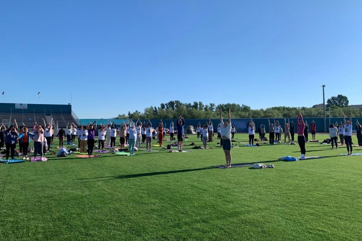 Сегодня, в 7 утра, на стадионе имени 5-летия Советской Тувы сторонники Партии республики организовали мастер-класс по йоге.