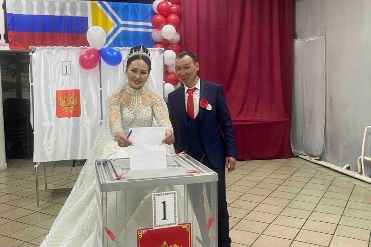 Молодожены из Дзун-Хемчикского района сразу после ЗАГСа отправились на голосование