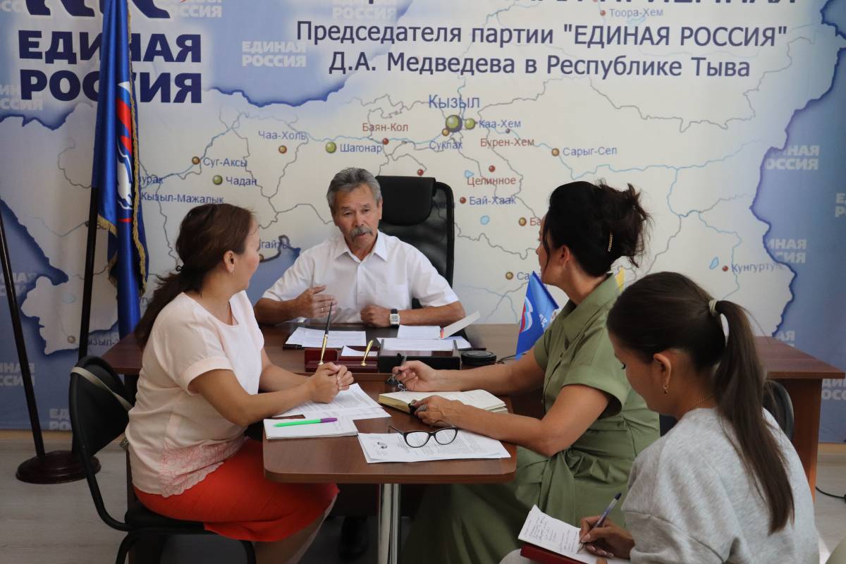 Напомним, что с 31 июля по 04 августа 2023 г. на площадках Региональной общественной приемной Председателя Партии «ЕДИНАЯ РОССИЯ» Д.А.Медведева в Республике Тыва и Местных общественных приемных Партии в кожуунах республики и гг.Кызыл, Ак-Довурак пройдет НЕДЕЛЯ ПРИЕМОВ ГРАЖДАН ПО ВОПРОСАМ ОБРАЗОВАНИЯ с привлечением сенатора Российской Федерации, членов фракции, депутатов всех уровней фракции «ЕДИНАЯ РОССИЯ», должностных лиц Министерства образования Республики Тыва, Управлений по образованию в кожуунах республики, Департамента по образованию Мэрии г.Кызыла, представителей общественных организаций: Всероссийское общественное движение «Отцы России», Всероссийская общественная организация «Воспитатели России», «Общероссийской общественной организации «Совет матерей», Уполномоченного по правам ребенка в Республике Тыва.