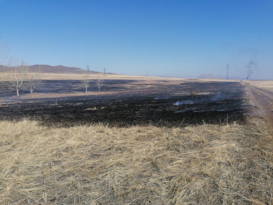 29 марта 2023 года на территории Улуг-Хемского кожууна зафиксирован один случай возгорания степного пожара возле автодороги Р-257 "Енисей",