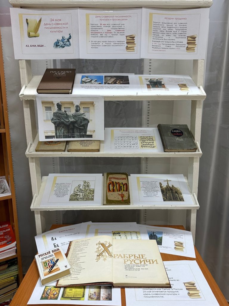 В библиотеке колледжа организована выставка, посвященная этой дате, где можно ознакомиться с историей праздника и старославянской азбукой. А также специально для посетителей библиотеки разработан интересный кроссворд, связанный со славянской письменностью.