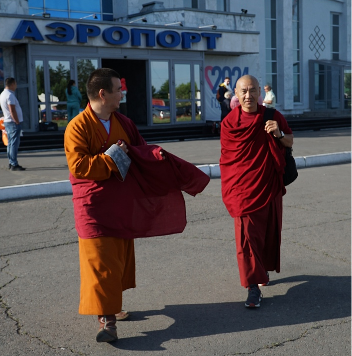 В аэропорту высокого буддийского учителя Джигме Гьяцо встречали Камбы-лама республики Гелек Нацык-Доржу, монахи монастыря Дрепунг Гоманг во главе с Кхаджоком Ринпоче, тувинские монахини и тувинские буддисты с хадаками, цветами и подношением традиционного тувинского чая.