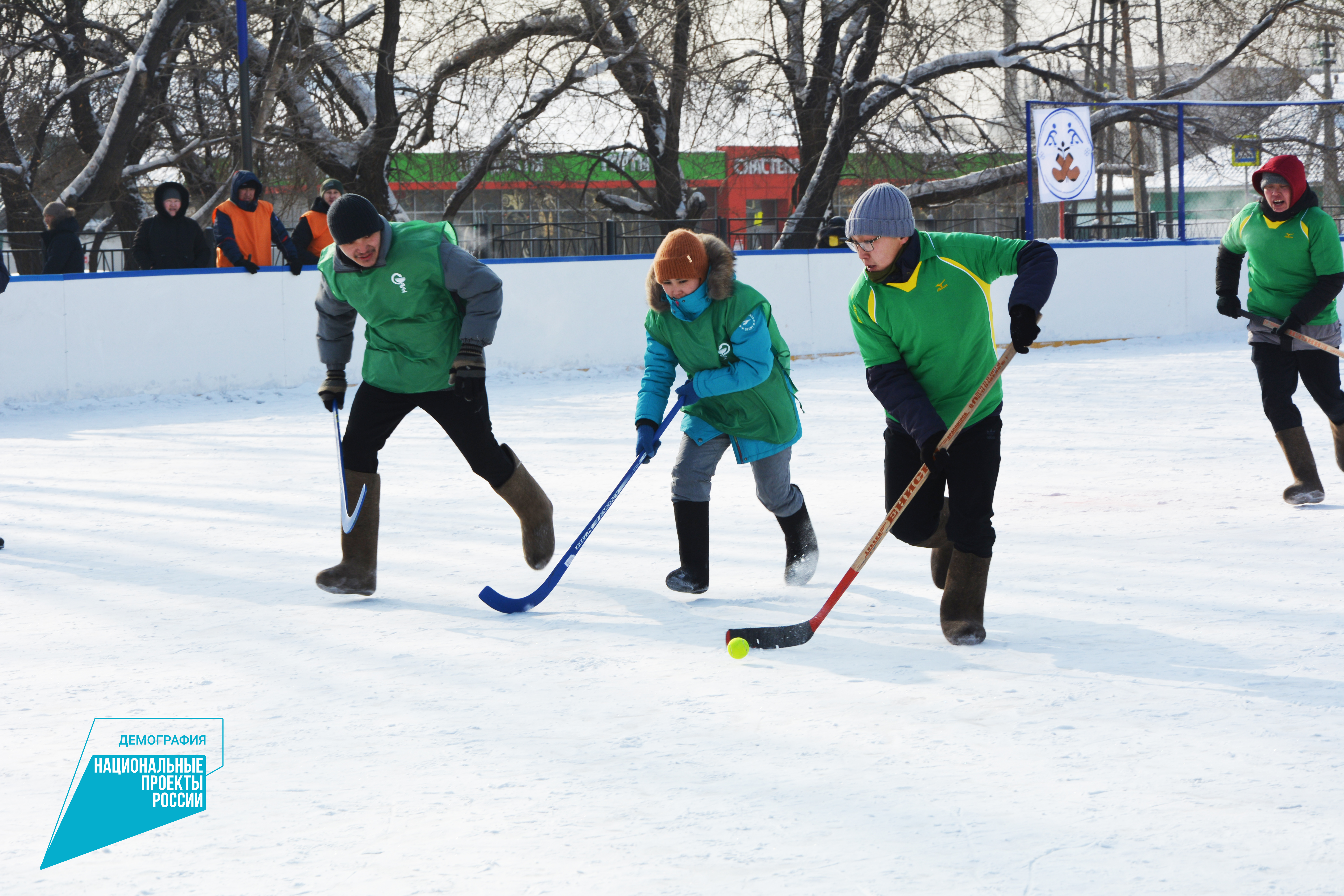 В минувшие выходные на хоккейной площадке школы №1 Кызыла, построенного по проекту «Укрепление общественного здоровья» нацпроекта «Демография»,