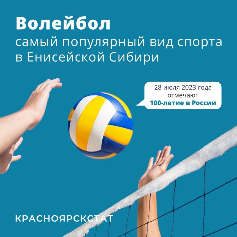 Отечественному волейболу исполнился век! Первый в России официальный матч состоялся в Москве 28 июля 1923 года. Сегодня волейбол — самый популярный вид спорта у жителей Енисейской Сибири. В Красноярском крае им занимается 53 тыс. человек, в Хакасии 14 тыс., в Тыве 16 тыс. За пять лет в Красноярском крае число игроков увеличилось на 6 тыс. (на 13%), в Хакасии — почти на 900 человек (на 7%), в Туве на 2 тыс. человек (на 16%).