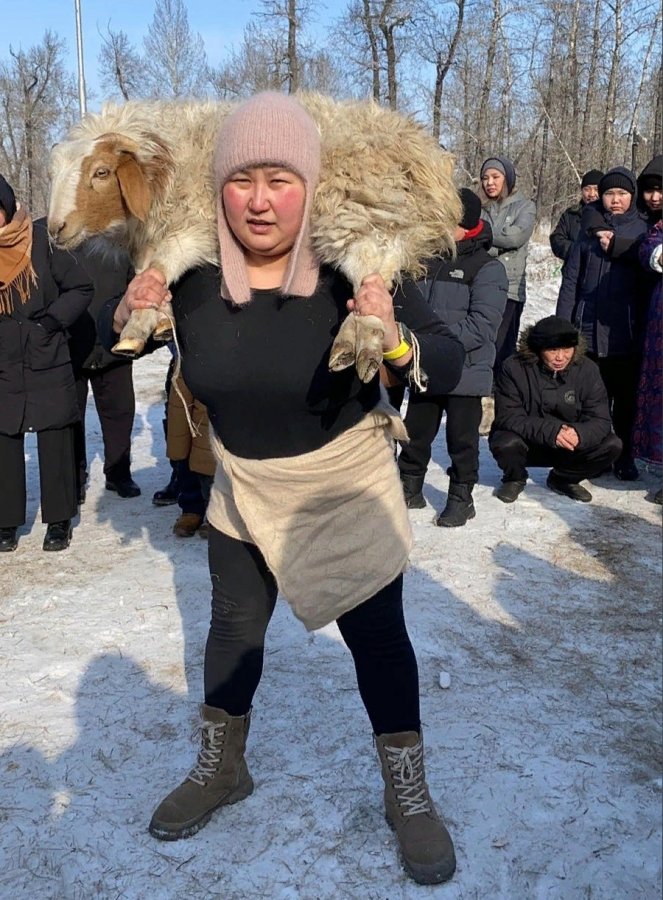 В Туве на праздничных состязаниях к Шагаа мама особенного ребенка Аиза Идам-Сюрюн присела с бараном на плечах 60 раз!