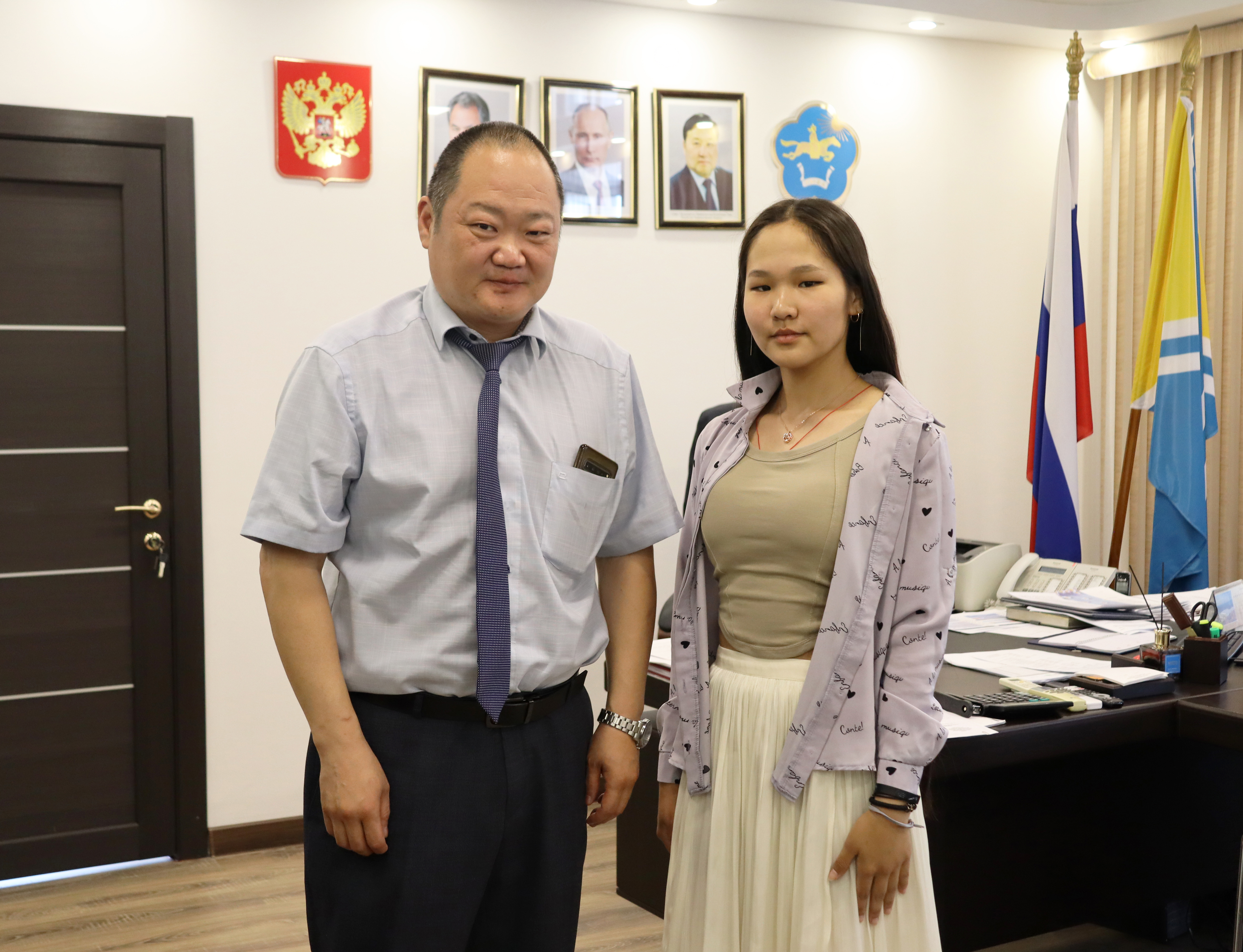 Министр здравоохранения Республики Тыва Анатолий Югай сегодня встретился с Аялгой Донгак, которая в этом году окончила школу с отличием.