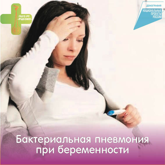 Клинические признаки бактериальной пневмонии во время беременности имеют те же черты, что и у небеременных пациенток. При серьезном подозрении на пневмонию, следует выполнить рентгенографию грудной клетки. Нежелание выполнять рентгенографию из-за тревоги за лучевую экспозицию плода может привести к запоздалому лечению с последствиями, которых потенциально можно было бы избежать.