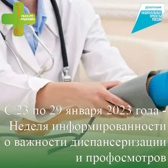 С 23 по 29 января 2023 года Министерство здравоохранения Российской Федерации объявило Неделей информированности о важности диспансеризации и профосмотров.