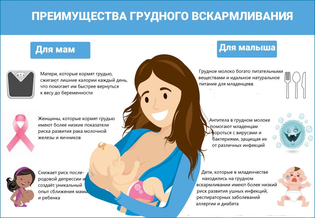 Кормить грудью важно и для самой женщины: это укрепляет ее психологическую связь с младенцем, защищает от развития онкологических заболеваний (особенно рака молочной железы и яичников), помогает восстанавливаться после родов и снижает риск послеродовой депрессии. Грудное вскармливание снижает риска развития сердечно-сосудистых заболеваний и диабета, а также остеопороза и переломов костей в постменопаузе.