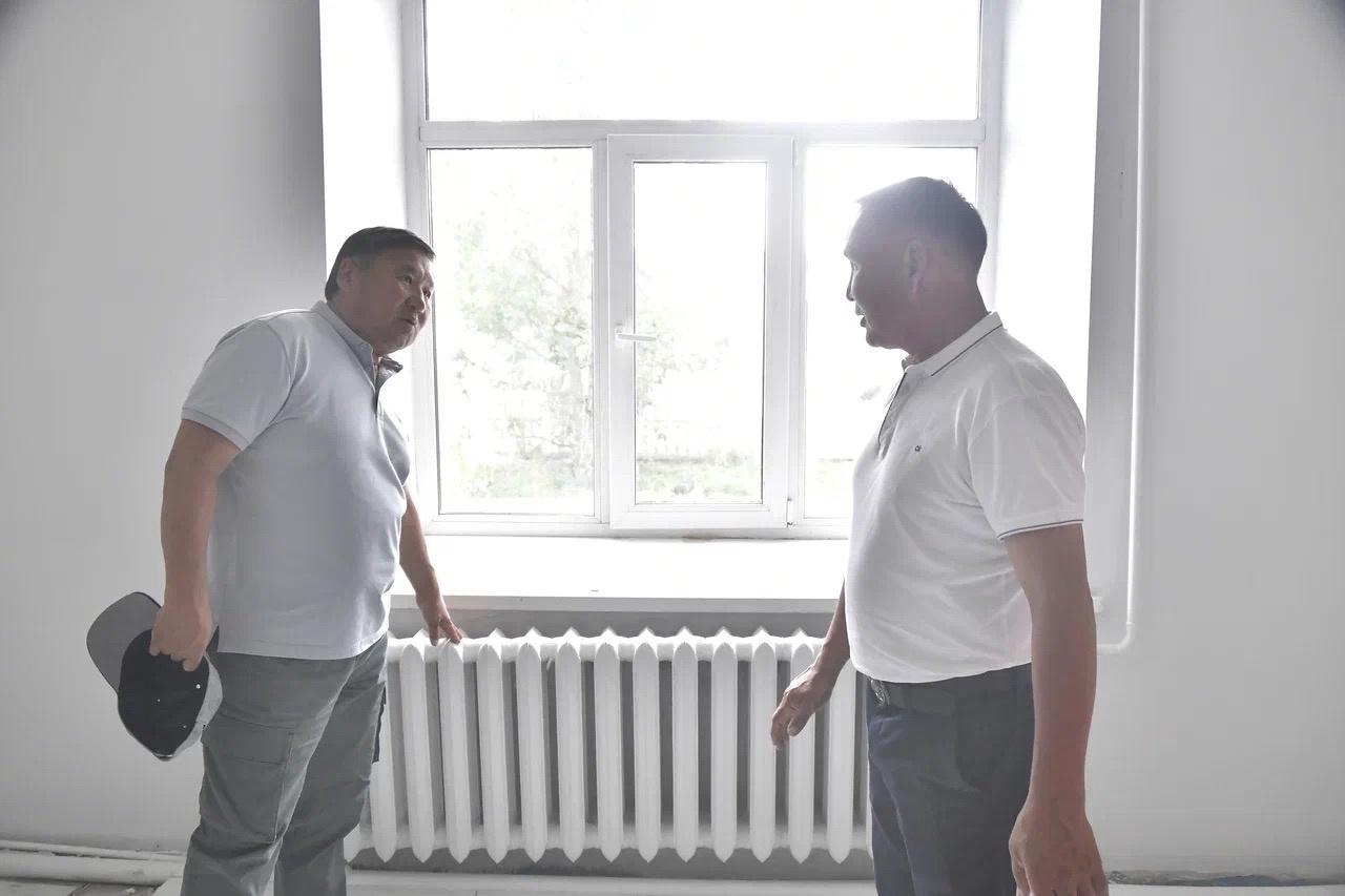 Глава Республики Тыва Владислав Ховалыг в сопровождении министра здравоохранения Анатолия Югая проинспектировал ход капитального ремонта поликлиники Бай-Тайгинской кожуунной больницы в селе Тээли,