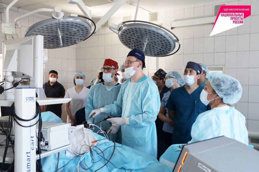 В рамках проекта «Борьба с онкологическими заболеваниями» нацпроекта «Здравоохранение» для врачей-онкохирургов сегодня проведены мастер-классы по лапароскопическим хирургическим вмешательствам на почках.