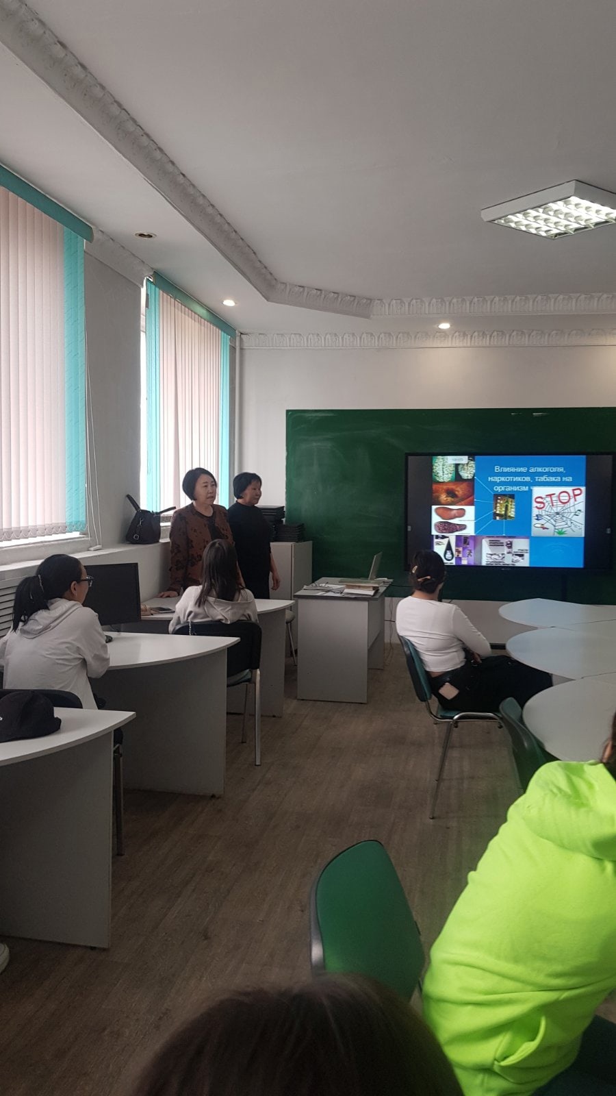 Во время лекции врач выступила с презентацией и видеороликами по укреплению общественного здоровья. Также рассказала о влиянии курения на репродуктивное здоровье, о факторах риска алкоголя, электронных сигарет и табакокурения. Напомнила, что здоровый образ жизни никоим образом не совместим с вредными привычками: курение, употребление алкоголя и наркомания.
