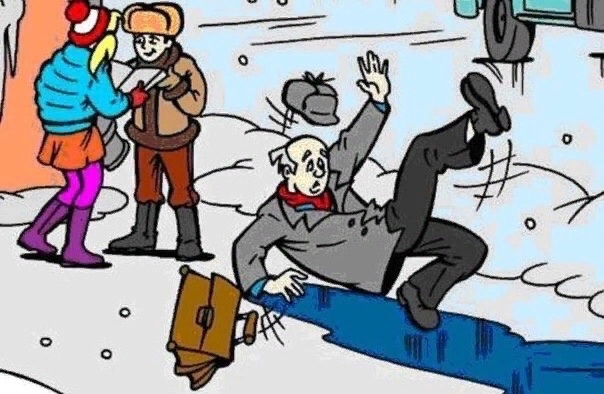 Под снегом лед плохо виден, потому торопиться зимой не стоит, особенно пожилым людям (у них частенько нарушено равновесие) и дамам на высоких каблуках и платформах.