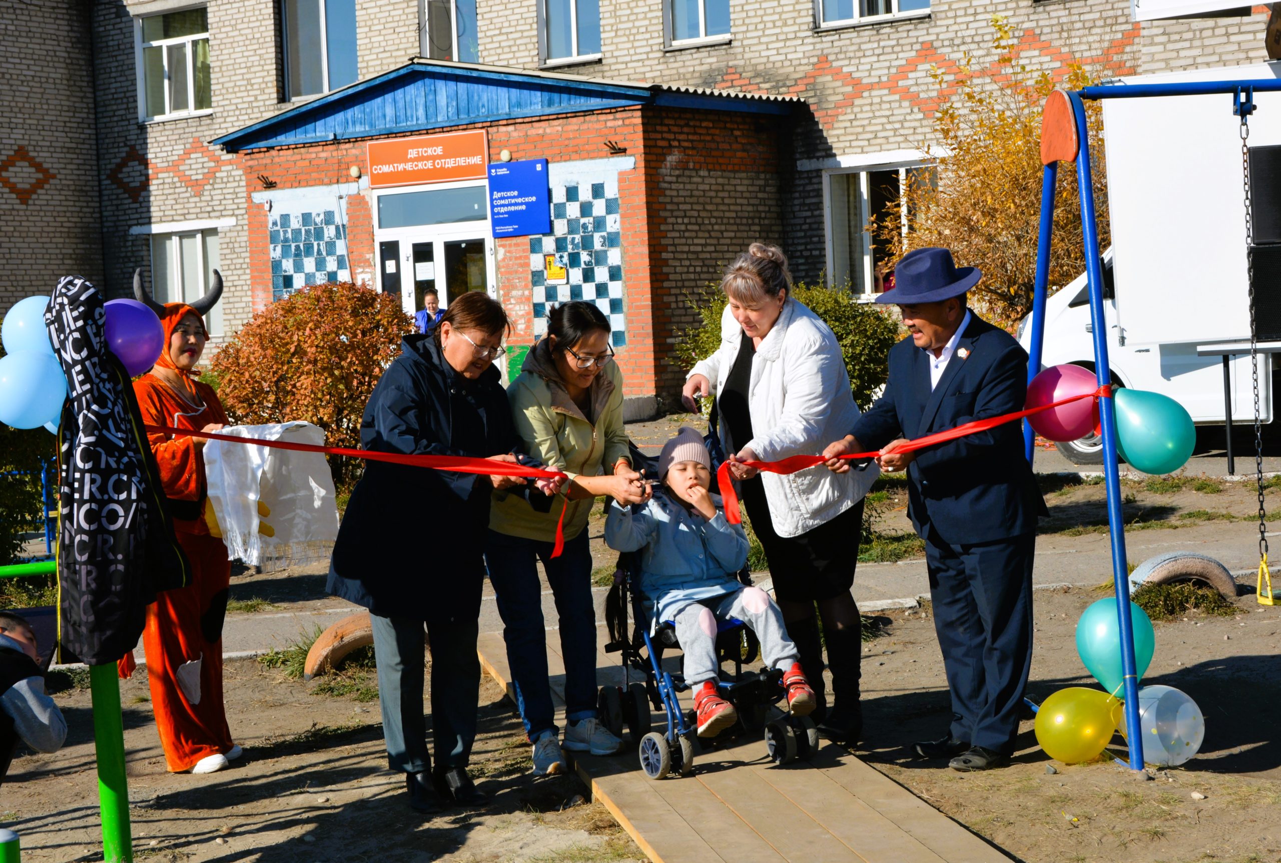 В торжественной церемонии открытия спортивной площадки приняли участие руководитель Проектного офиса Минздрава РТ Эренмаа Ондар, заместитель главного врача РЦОЗМП Наталья Агапова, председатель благотворительного фонда “Реальная помощь” Аян Монгуш и директор Фонда поддержки детей-инвалидов “Ласточка” Роза Донгак.