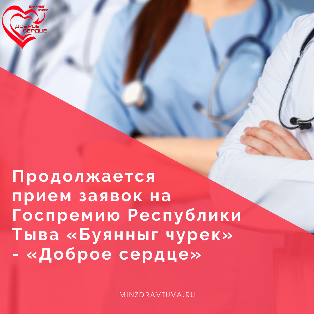 Продолжается прием заявок на Государственную премию Республики Тыва «Буянныг чурек» - «Доброе сердце», вручаемую медицинским и фармацевтическим работникам,