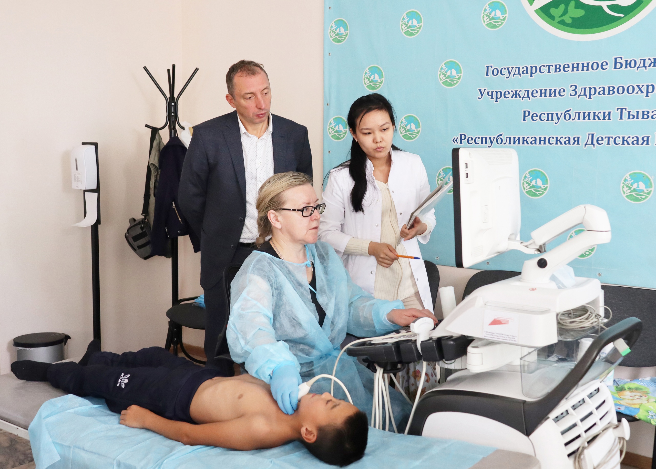 Московские специалисты провели также УЗИ-диагностику маленьких пациентов для выявления врождённых пороков сердца и отбора на хирургическое лечение на базе НМИЦ. За два дня работы специалисты обследовали 35 малышей.