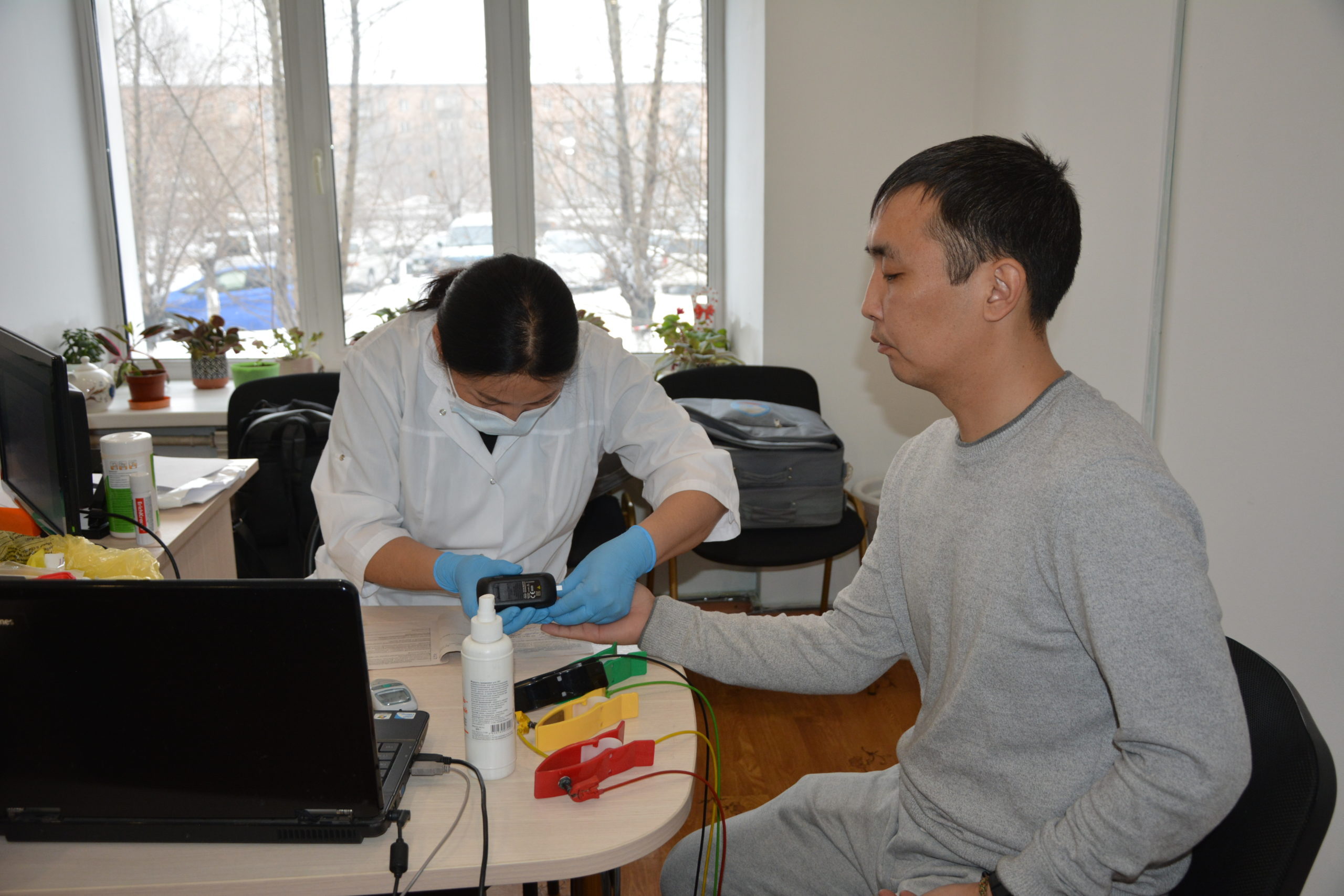 Сегодня медики провели обследование здоровья сотрудников Республиканского комплексного центра социального обслуживания населения “Поддержка”. Всего терапевтом, эндокринологом, гинекологом, неврологом, клиническим психологом, оториноларингологом и специалистами отделения “Центр здоровья” было осмотрено 29 человек.