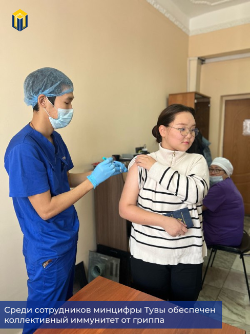 Ежегодно в преддверии сезона респираторно-вирусных инфекций сотрудники министерства цифрового развития Республики Тыва позаботились о своем здоровье путем вакцинации от гриппа.