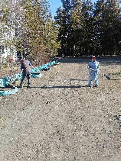 Коллектив филиала Противотуберкулезного диспансера республики в Тандынском кожууне - санатория "Сой" сегодня вышли на субботник территория.