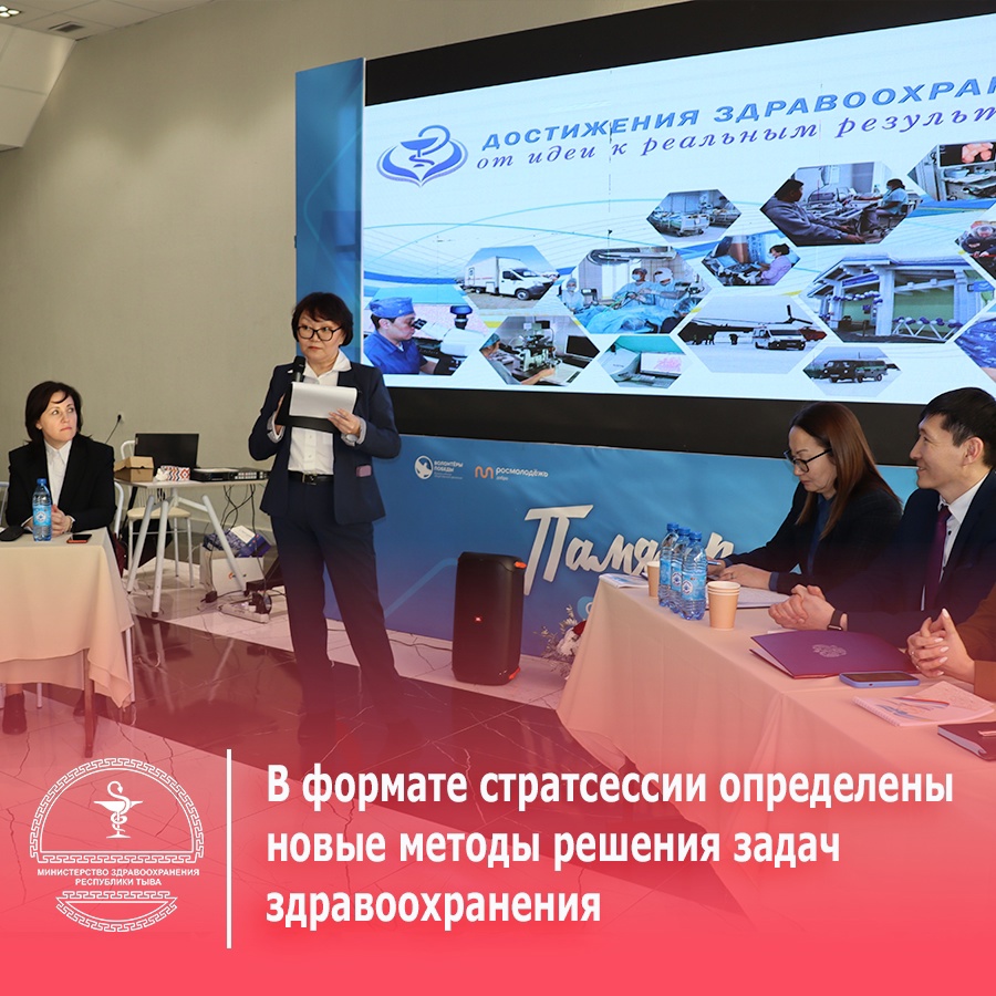 Министерством здравоохранения Тувы в формате стратегической сессии проработаны перспективы развития на предстоящий период: главные врачи медицинских организаций и главные внештатные профильные специалисты ведомства, разделившись на команды, провели мозговой штурм по шести направлениям. В качестве экспертов были приглашены специалисты из Сибирского государственного медицинского университета в Томске, а также министр цифрового развития Идегел Монгуш, генеральный директор ООО «Джелата» Денис Жарков, специалисты-эксперты Министерства здравоохранения.