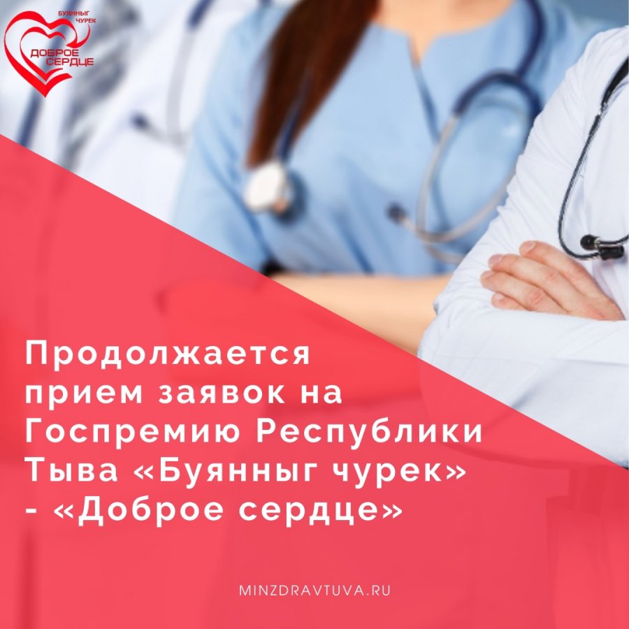 Продолжается прием заявок на Государственную премию Республики Тыва «Буянныг чурек» - «Доброе сердце», вручаемую медицинским и фармацевтическим работникам,